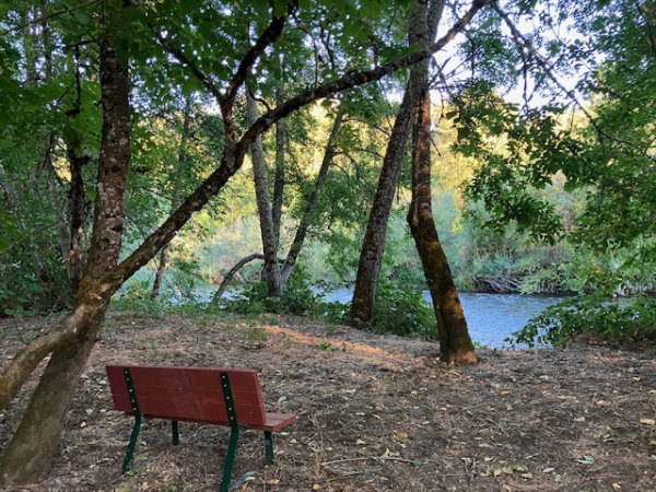 Walking from the RV park to the Applegate River access is a short stroll through trees and open areas, and you can hear the river as you get closer. It’s an easy, level walk that most people can manage. At the end, you’ll find direct access to the river for fishing, wading or sitting along the bank.